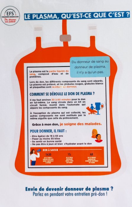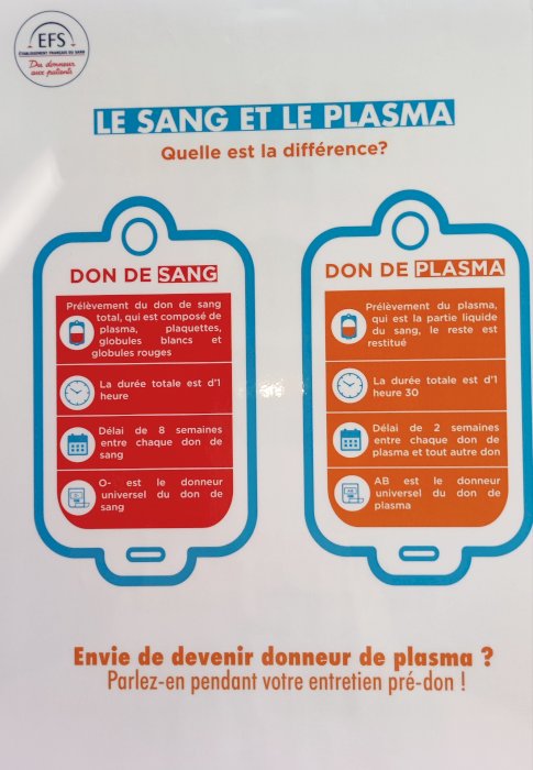 Il faut un délai de 15 jours entre 2 dons de plasma OU de sang total. Prenez RDV en maison du don (NANTES ou St NAZAIRE) en téléphonant ou sur internet